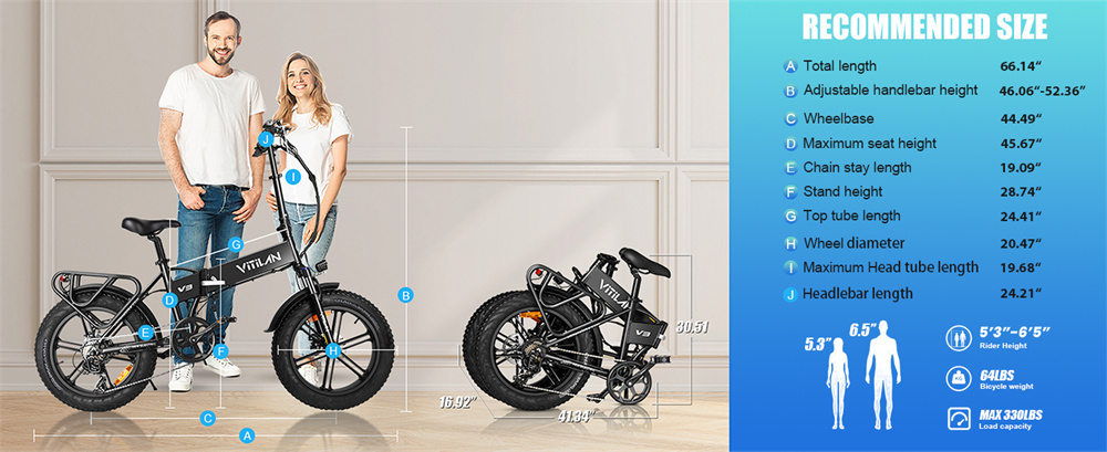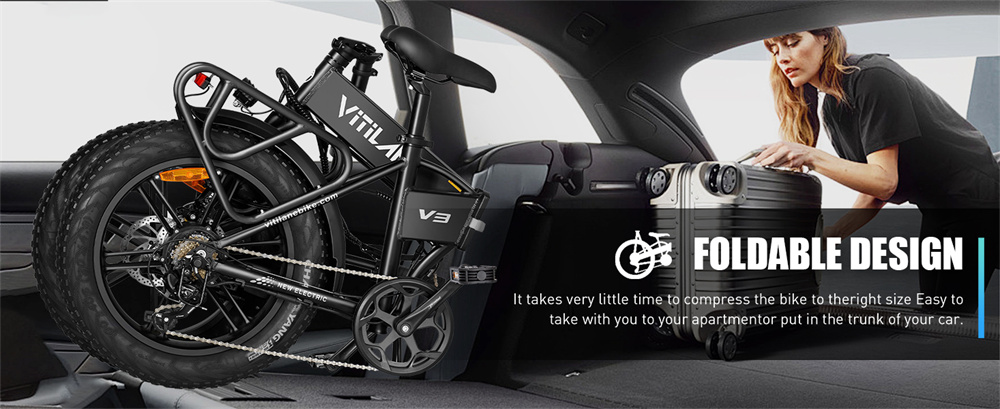 Vitilan V3 2.0 är en hopfällbar elcykel med tjocka terrängdäck, en kraftfull 750W motor och ett löstagbart 48V 13Ah batteri, designad för både stadspendling och terrängäventyr.