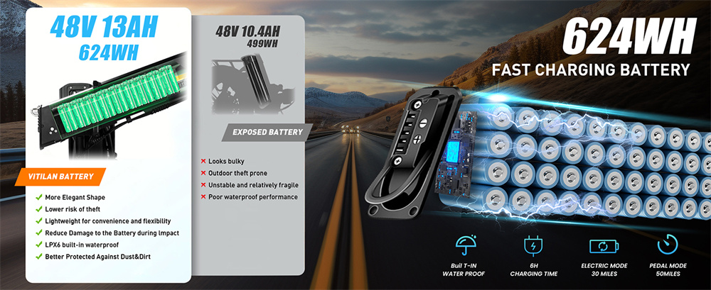 48V 13Ah (624Wh) löstagbart litiumjonbatteri. |