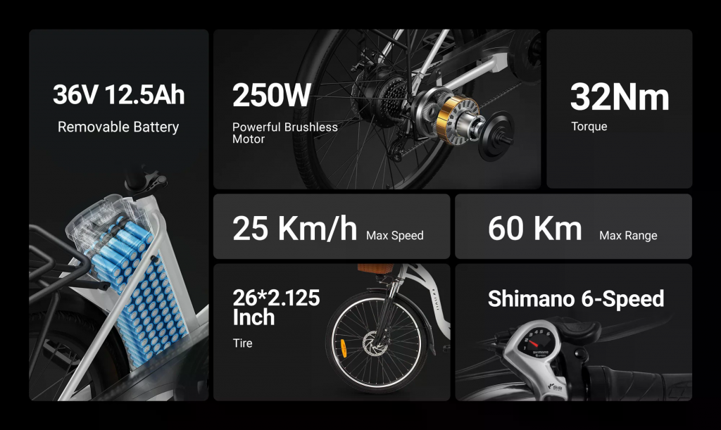 ![[EU Direkt] DYU C6 Elcykel 300W Motor 36V 12.5AH Batteri 26-tums Däck 25KM/H Toppfart 40KM Max Körsträcka 120KG Lastkapacitet Elektrisk Cykel](https://imgaz.staticbg.com/images/oaupload/banggood/images/E8/80/fa9a11d8-86b8-4130-ab78-06a7005b2dd8.jpg.webp)