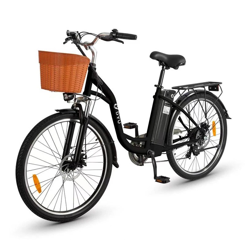 DYU C6 Pro är en stilren, retroinspirerad elektrisk stadscykel utformad för bekväm pendling med praktiska funktioner som korg fram och pakethållare bak. Den skiljer sig från standardmodellen C6 genom ett kraftfullare batteri och förbättrad räckvidd.