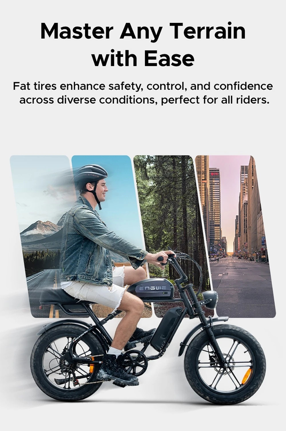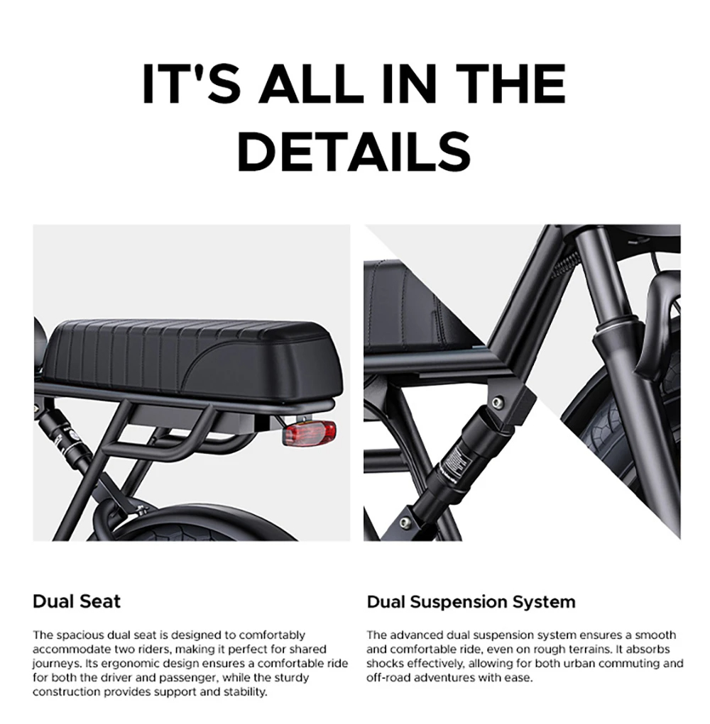 ENGWE M1 Dual Passenger är inte bara en elcykel; det är en inbjudan till delade äventyr. Denna snygga elcykel är designad för två och har en rymlig och bekväm dubbelsadel, perfekt för att utforska staden med en vän, partner eller familjemedlem.