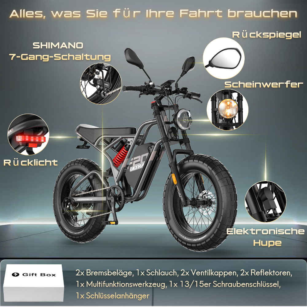 Fafrees F20 Ultra är en kraftfull elcykel i motorcykelstil med feta däck, designad för terrängkörning men med en version som är EU-typgodkänd för hastigheter upp till 45 km/h. Den har ett stort batteri för lång räckvidd och hydrauliska bromsar för god stoppkraft.