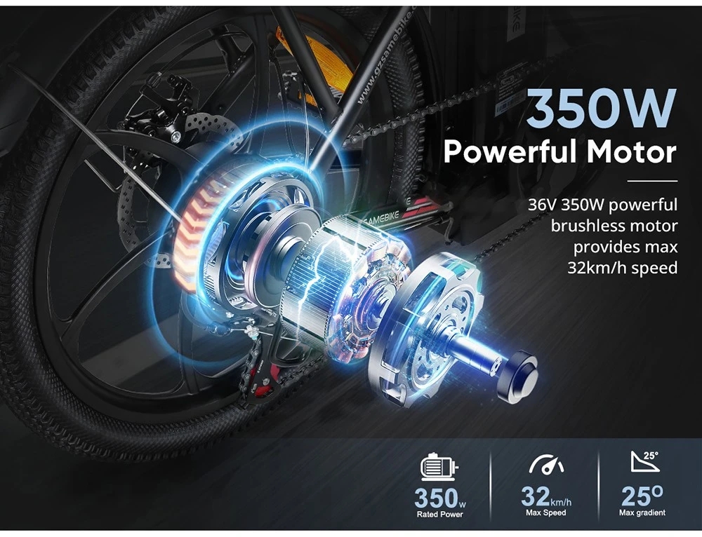 Samebike CY20 har en högpresterande 350W borstlös navmotor som ger imponerande acceleration och hastighet. Med en maxhastighet på 32 km/h garanterar denna motor en jämn och tyst körning samtidigt som den bibehåller energieffektiviteten. Motorns lätta design förbättrar den totala prestandan utan att lägga till onödig vikt, vilket gör den perfekt för stadscykling och pendling. Oavsett om du kör i backar eller navigerar i trafik ger CY20 dig den kraft du behöver för en pålitlig körning.