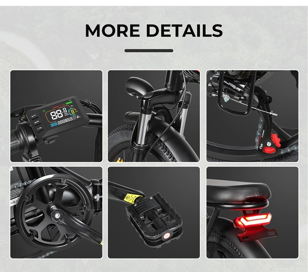 Samebike CY20 är byggd för komfort och stabilitet tack vare sitt dubbla fjädringssystem . Framgaffeln och baksätets fjädring arbetar tillsammans för att absorbera stötar och vibrationer från ojämn terräng, vilket säkerställer en jämn och bekväm åktur. Oavsett om du cyklar på asfalterade vägar eller tuffa stigar, förbättrar fjädringssystemet kontrollen och minskar trötthet, vilket gör att du kan cykla längre och bekvämare.