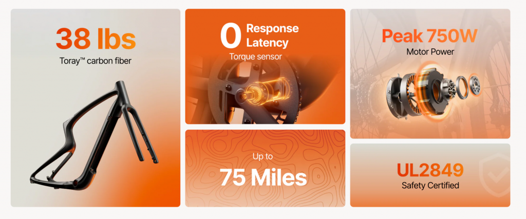 Enligt tillverkaren Urtopia och tester från Electric Bike Report har cykeln följande specifikationer: