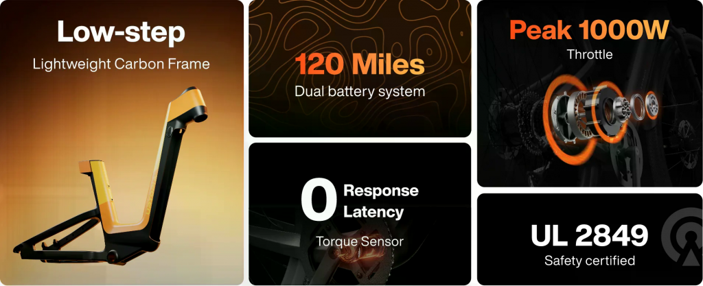 Urtopia Carbon Fusion Pro är en elcykel i kolfiber som kombinerar en lätt konstruktion med hög räckvidd, särskilt lämpad för stadspendling och lättare terräng. Den väger cirka 22 kg (48 lbs) och utmärker sig med sin kolfiberram och sitt vridmomentsensor-system som ger en naturlig cykelkänsla.