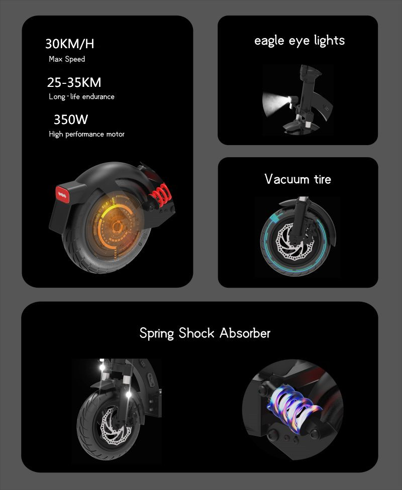 | Suspension | Fram- och bakfjäderstötabsorbering | Motor | 350W |