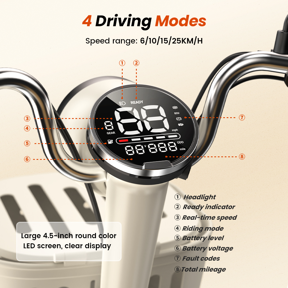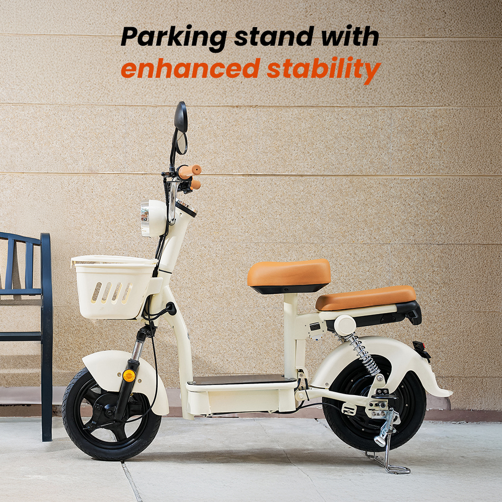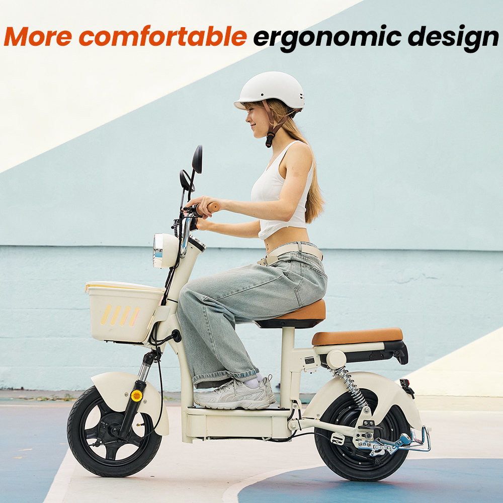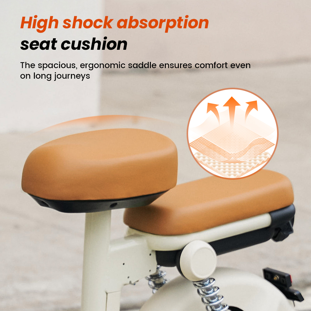 iScooter Y16 är en robust elscooter med säte, designad för bekväm stadspendling och längre turer. Den utmärker sig med en kraftfull motor, lång räckvidd och praktiska funktioner som integrerad korg.