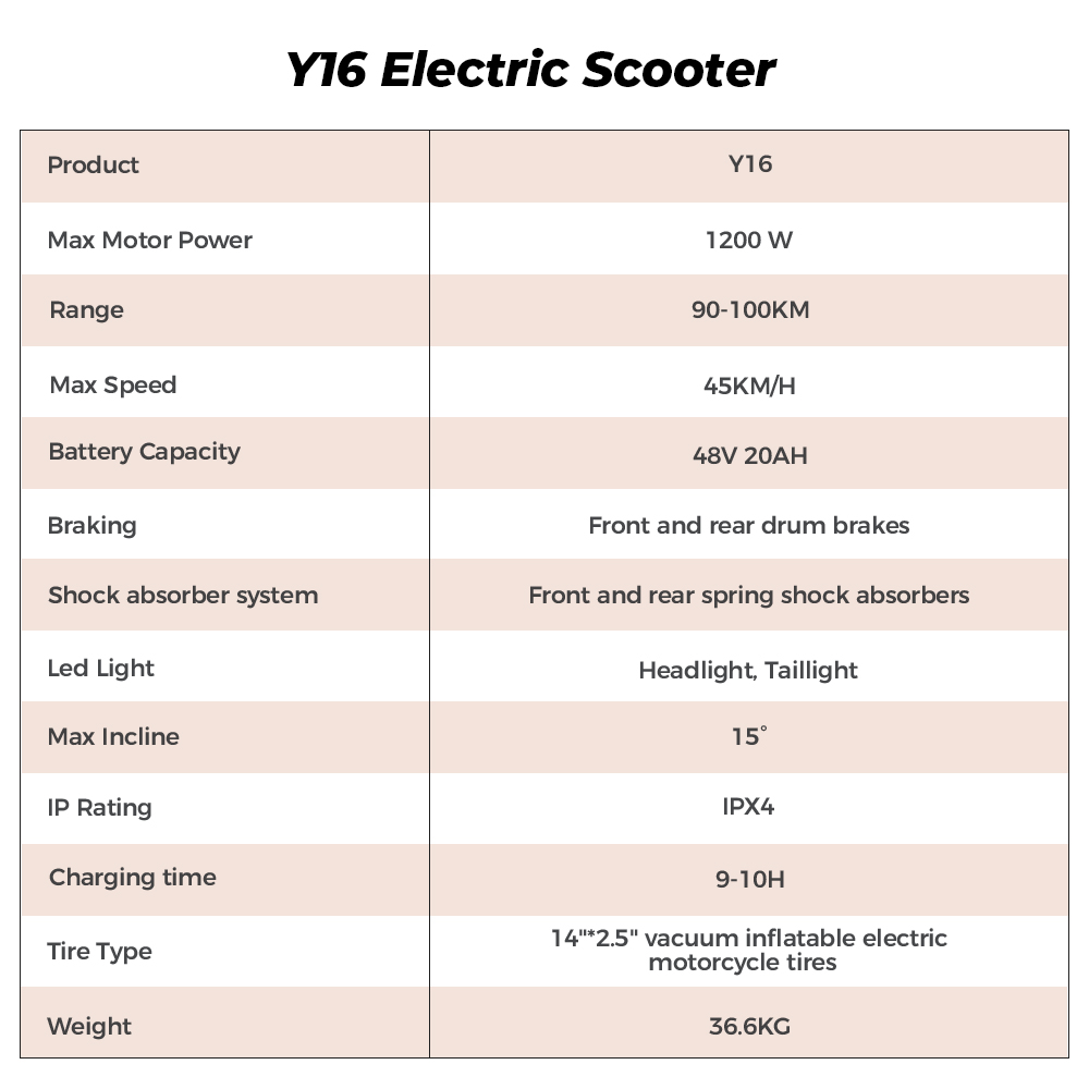 iScooter Y16 marknadsförs som en "City Elsparkcykel" men har prestanda som drar åt offroad-hållet. Den största fördelen är de 14-tums däcken som ger en betydligt stabilare och bekvämare resa på ojämna underlag än standardmodeller med 8,5- eller 10-tumshjul.
