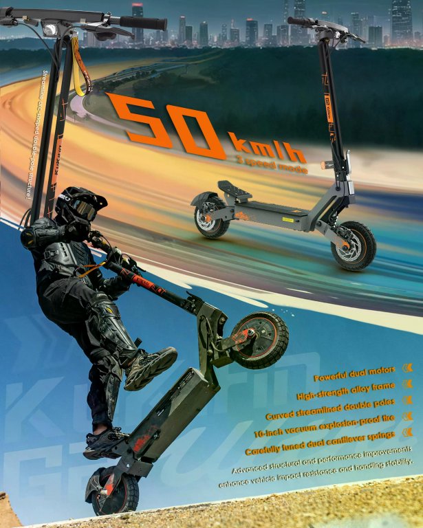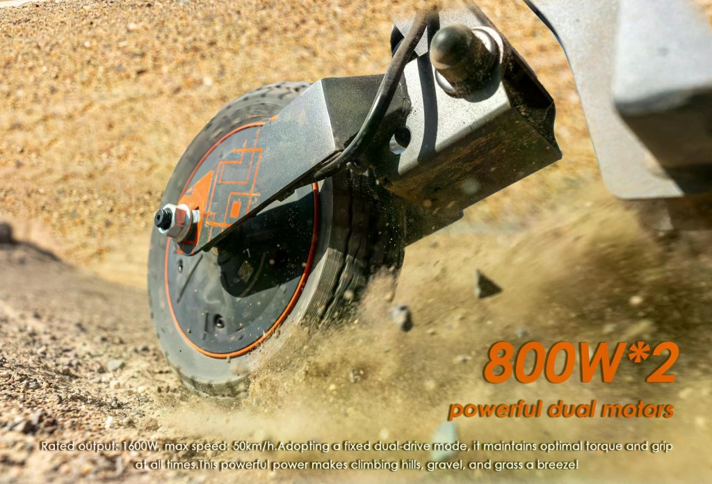 KuKirin G2 Ultra är en kraftfull terräng-elsparkcykel utrustad med dubbla 800 W-motorer som ger en toppfart på upp till 55 km/h och en räckvidd på upp till 55 km per laddning.