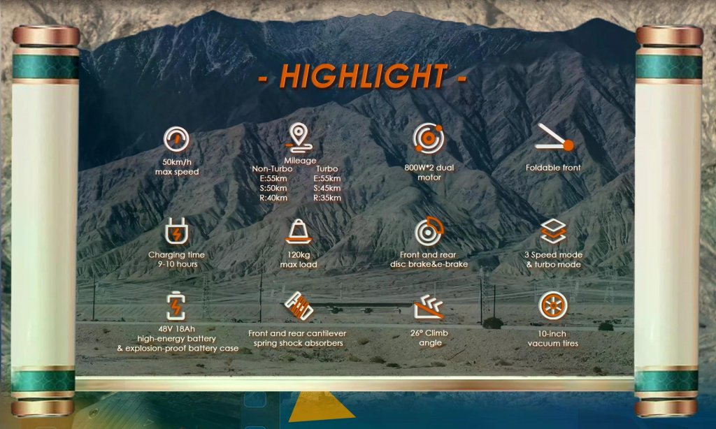 • Icke-turboläge Batteritid: E-växel ≤55 km, S-växel ≤50 km, R-växel ≤40 km