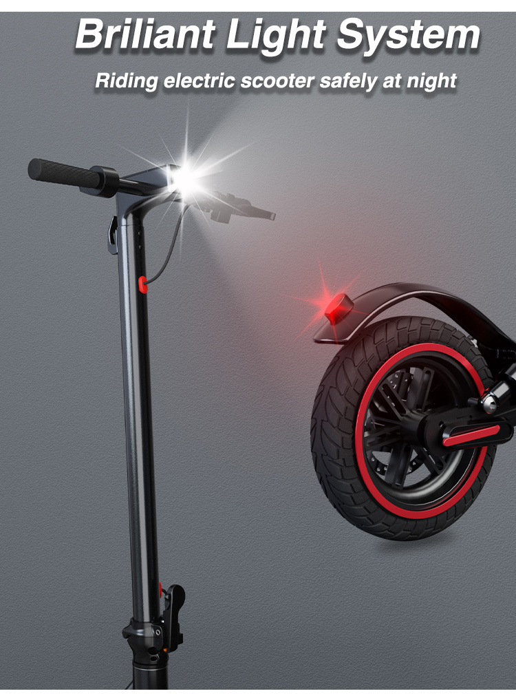 Hopfällbar design, inbyggd justerbar sadel, bakre förvaringskorg, LED-belysning |
