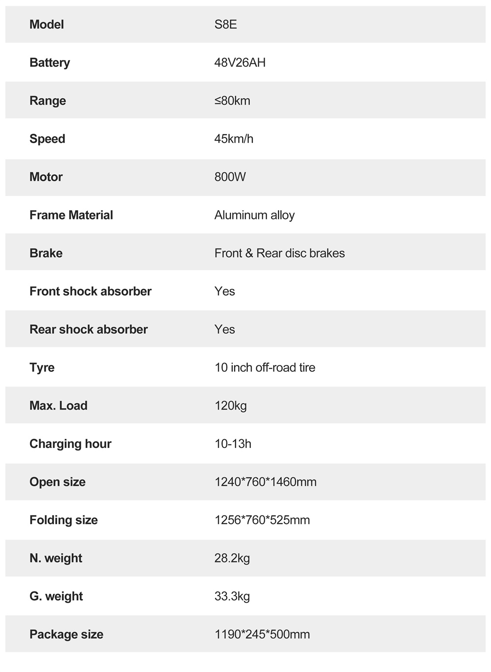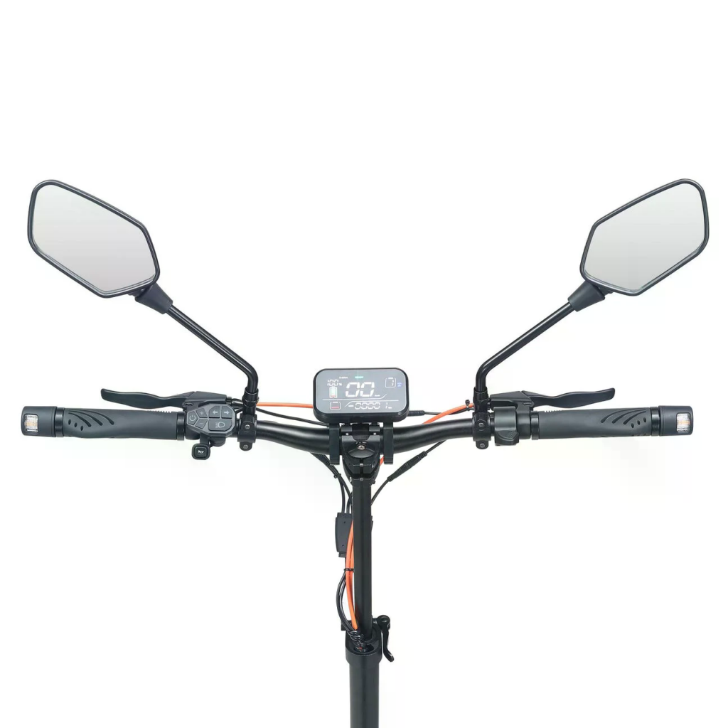 Joyor S8E är byggd med en ram av solid aluminium, vilket bidrar till dess hållbarhet. Den har också belysning fram och bak, blinkers och ett elektroniskt signalhorn för ökad säkerhet.